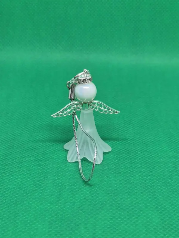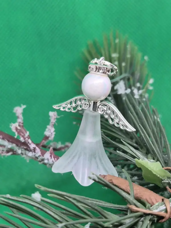 Roppantott üveggyöngyből és teklagyöngyből készült kis angyalka fenyődíszek, telefondíszek, táskadíszek.
