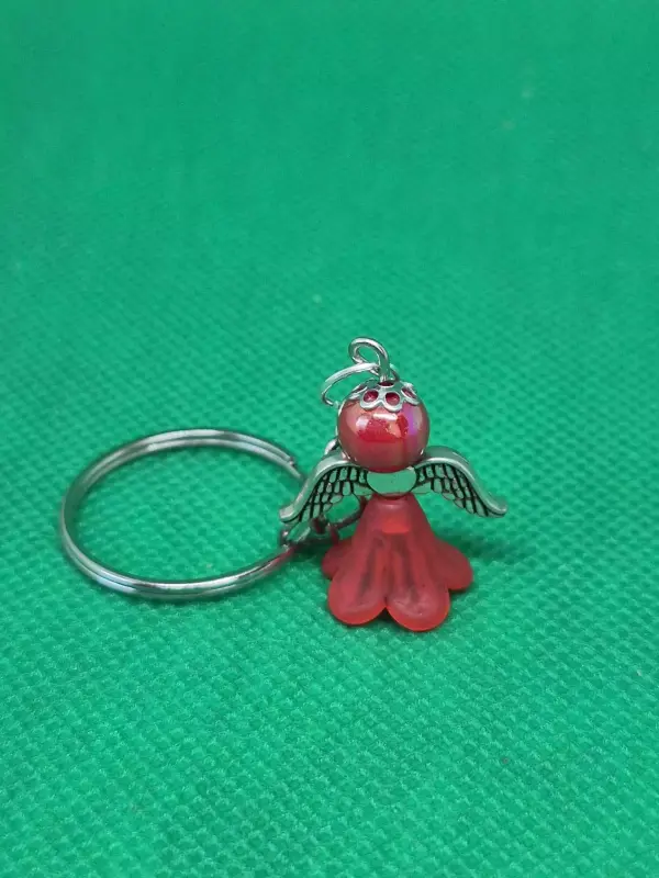 8 mm-es piros gyöngyből készült angyalkás kulcstartó.