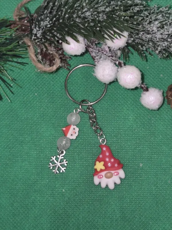 A mikulás manó figura gyantából készült. Mellette hópelyhes gyöngy mikulás figurával és hópehellyel. Két féle méretben kapható a mikulás manó: 2,5 cm és 2 cm. A kulcstartó teljes mérete: 8 cm.